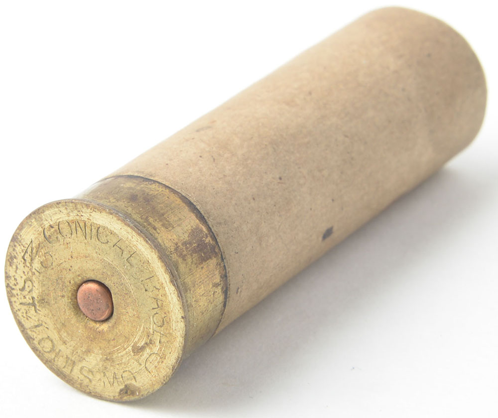 Conical Base No 10 St Louis MO, 10ga, NPE, tan paper case, 2 7/8'' OAL. Grade: Very Good ++ - Value: 16 to 60