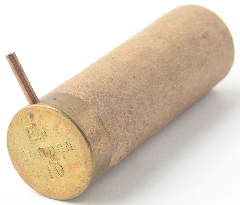 E.B. London 10ga, loaded Pinfire, 2 3/4'' OAL. Grade: Excellent - Value: 20 to 50