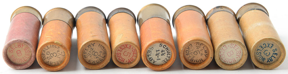 Lot of 8 Selby TW paper shotshells. Grade: Excellent - Value: 10 to 60