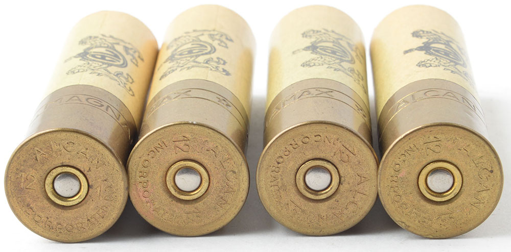 Lot of 4 Alcan Incorporated 12ga, empty paper cases, 2 3/4'' OAL. Grade: Very Good ++ - Value: 10 to 50
