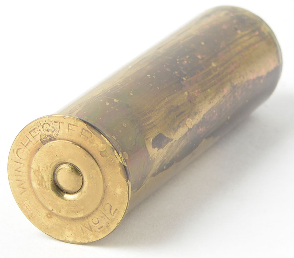 Winchester 12ga, loaded brass with slug, 3'' OAL. Grade: Very Good ++ - Value: 40 to 150