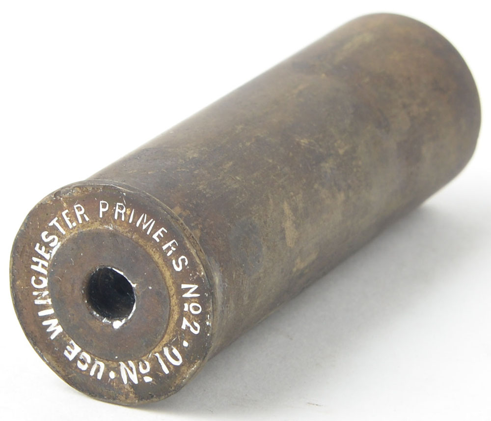 RARE Winchester Primers, 10ga, empty brass, 2 5/8'' OAL. Grade: Very Good ++ - Value: 20 to 80