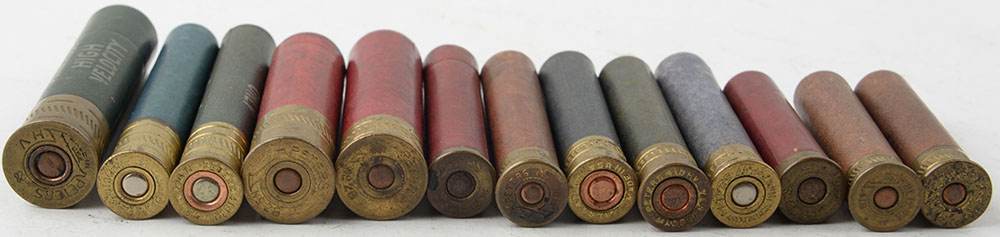 | Lot of 13, mixed gauges, paper shotgun shells. Grade: Very Good ...