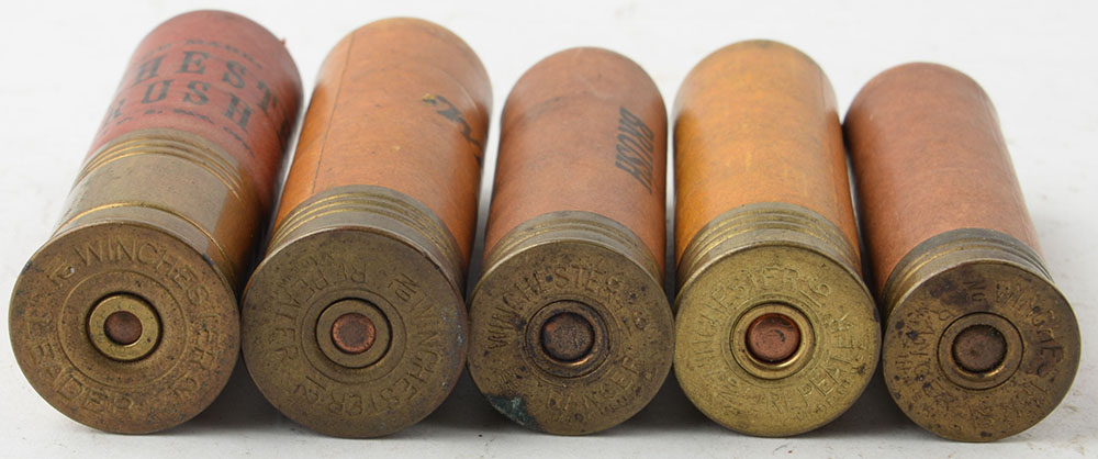 | Lot of 5, mixed gauges, paper shotgun shells. Grade: Very Good ...
