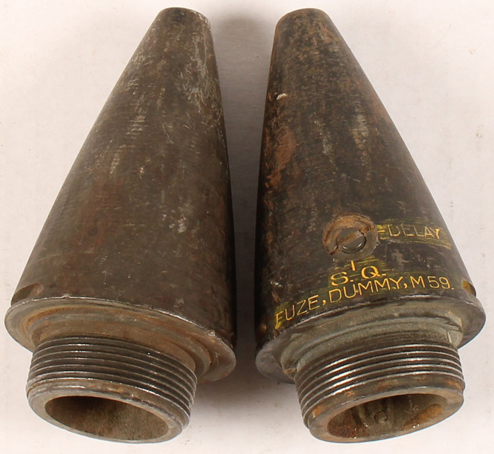 Lot of two, Dummy fuse head for training artillery shells, one marked ''S.Q.'' & ''M59'', the other ''M-44A2''.Grade: Very Good - Value: 20 to 60
