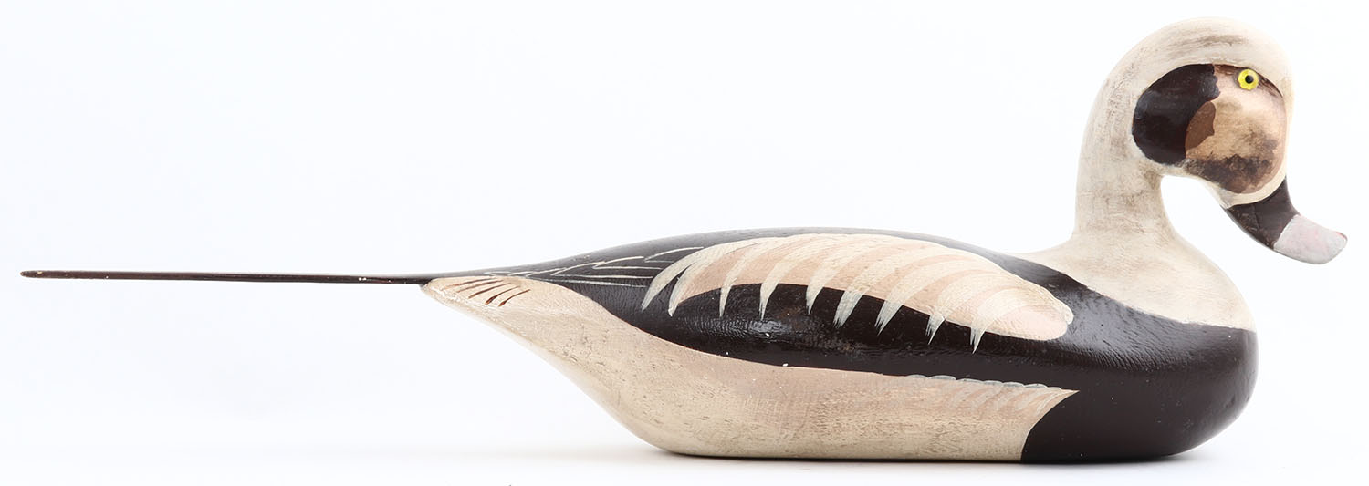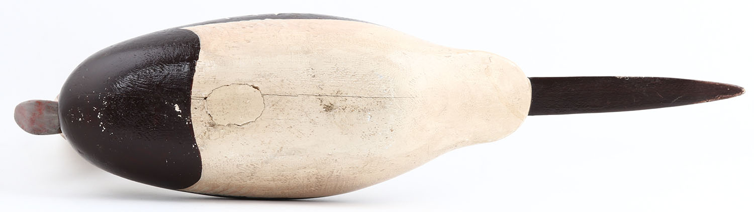 Old Squaw Drake by unknown maker, GE, solid wood, original paint extra long tail, structurally excellent, 21'' OAL. Grade: Excellent - Value: 70 to 200