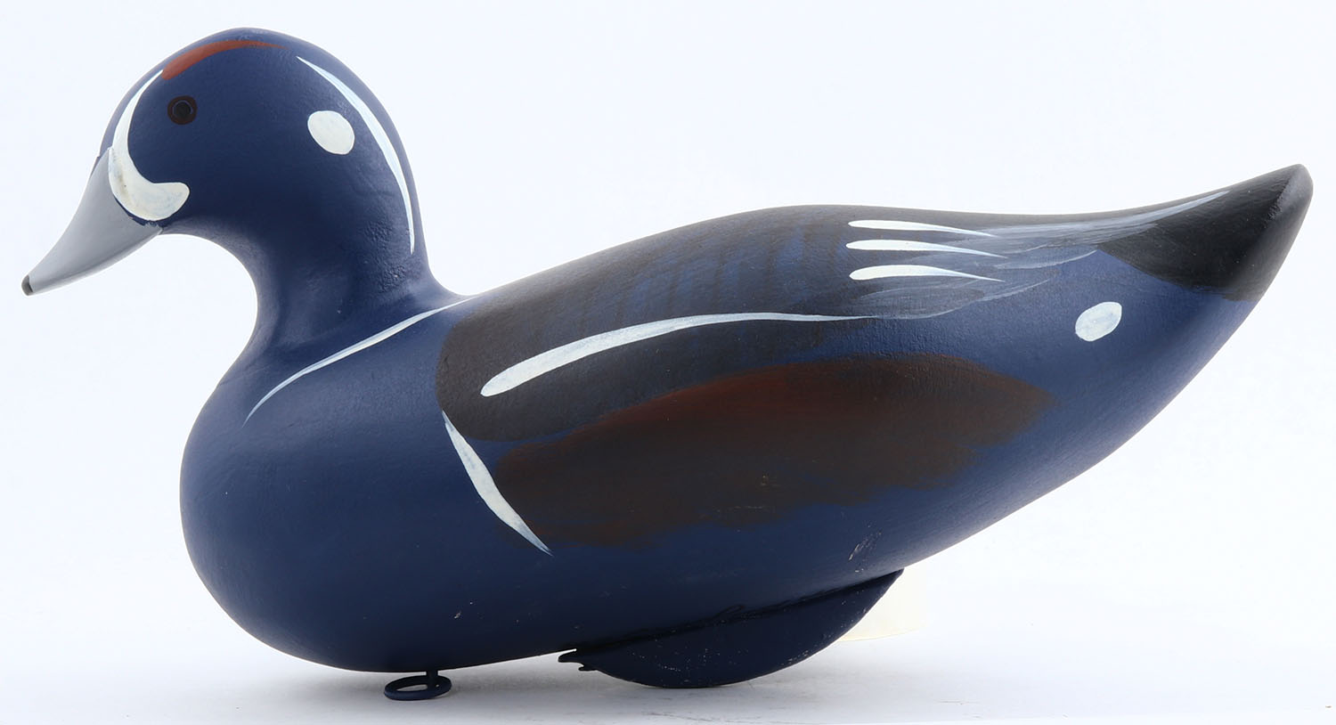 Harlequin Drake by Capt. Bob Jobes, Havre De Grace, MD , painted eyes, solid wood, original paint, signed on bottom by CAPT. BOB JOBES, structurally excellent, 14'' OAL. Grade: Excellent ++ - Value: 50 to 100