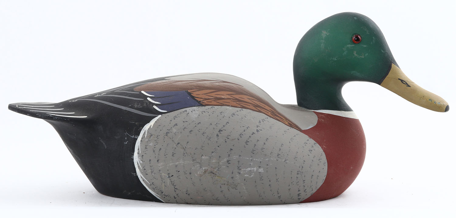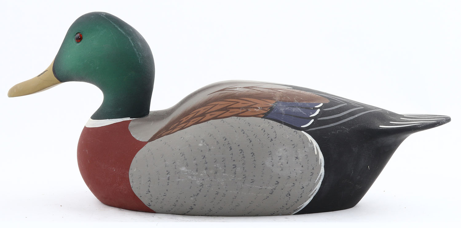 Mallard Drake by Leonard E. Hornick, Stoney Point, GE, solid wood, original paint, structurally excellent, signed on bottom, 14 1/2'' OAL. Grade: Excellent ++ - Value: 30 to 60
