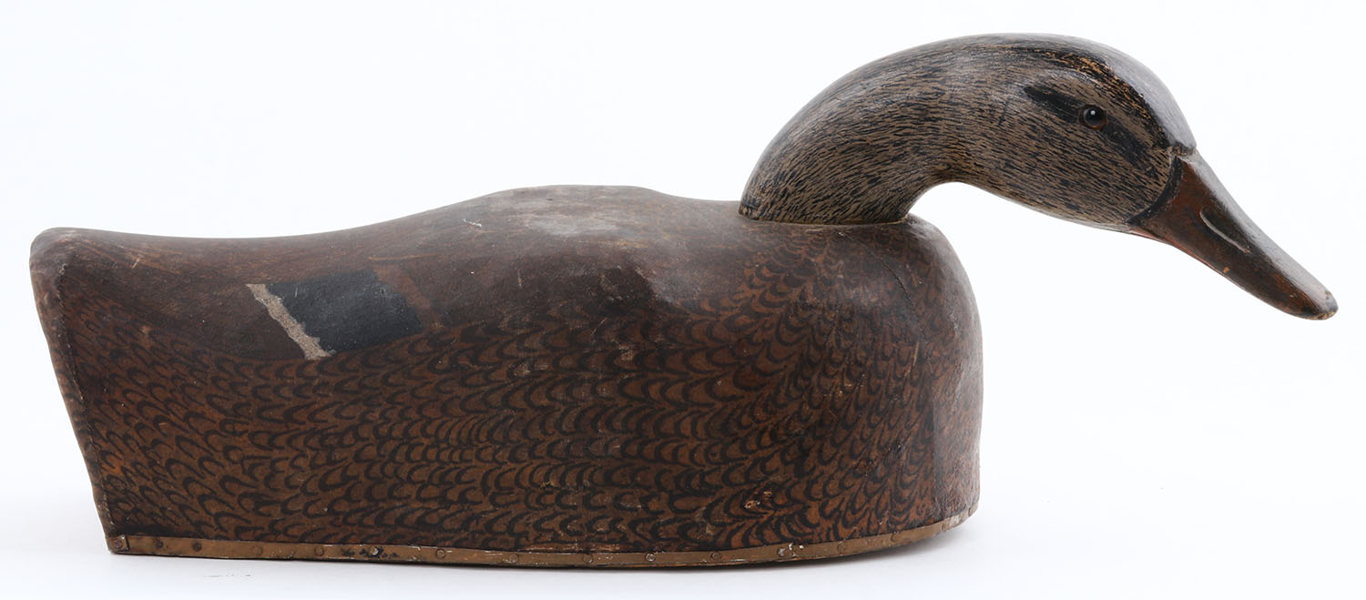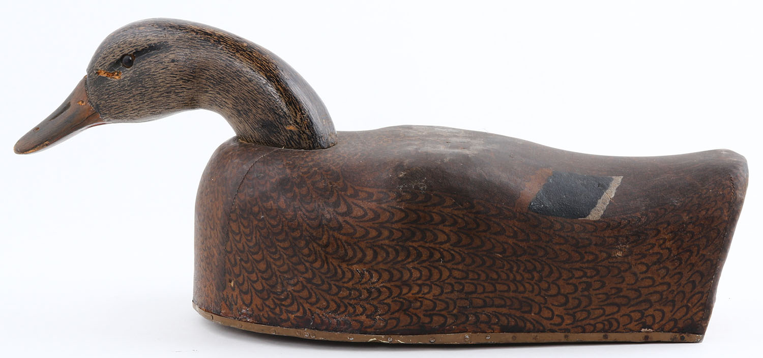 Early Hen Mallard by Herters Decoy Co., Waseca, MN, glass eyes, canvas over cork, original paint, structurally excellent. Grade: Excellent - Value: 40 to 100