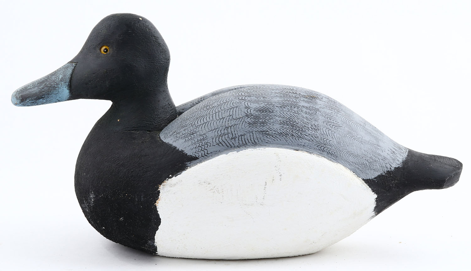 Bluebill Drake by Jim Meidam, glass eyes, solid wood, original paint, structurally excellent. Grade: Excellent - Value: 20 to 80