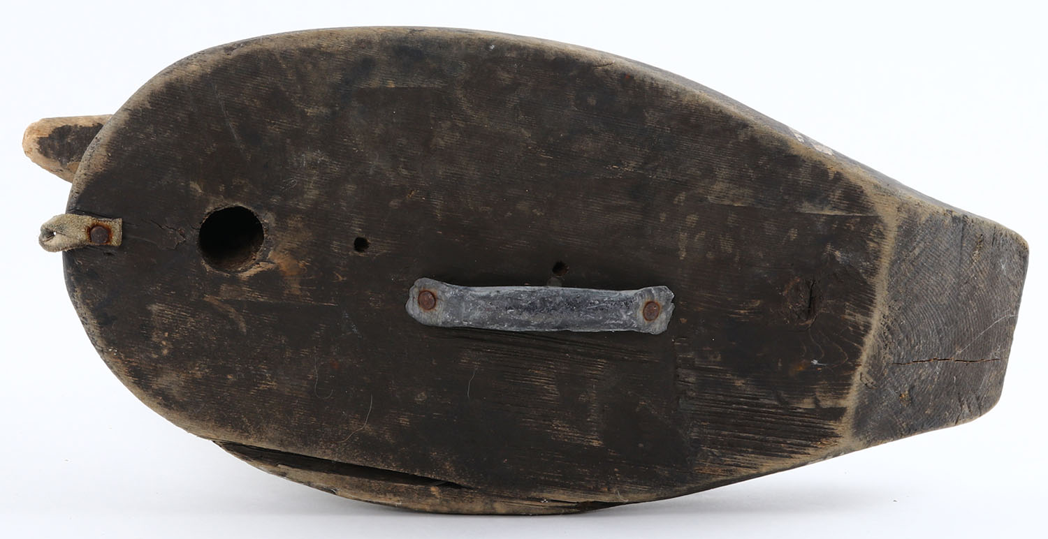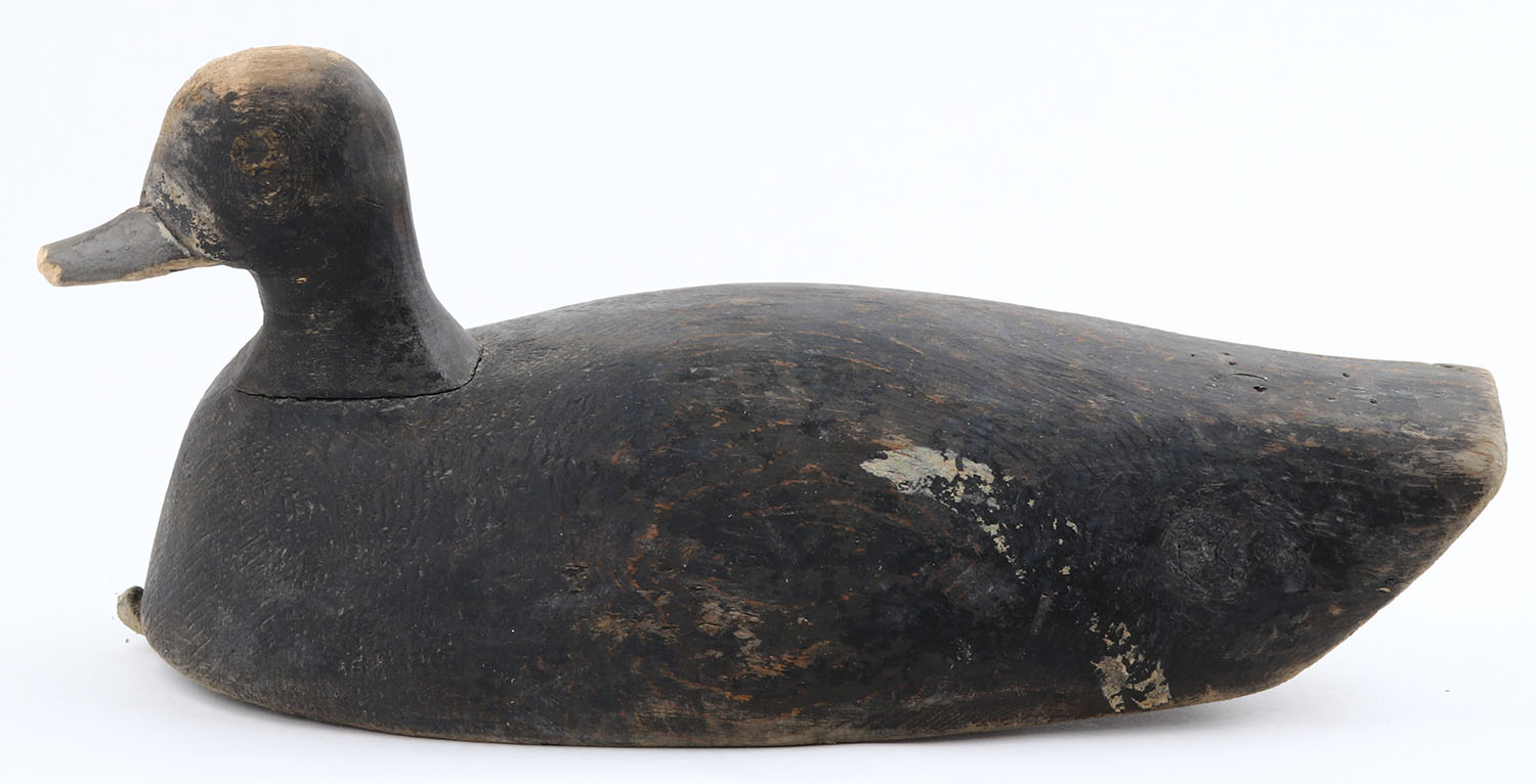Bluebill Drake by unknown maker, no eyes, solid wood, original paint, structurally excellent. Grade: Very Good ++ - Value: 10 to 60