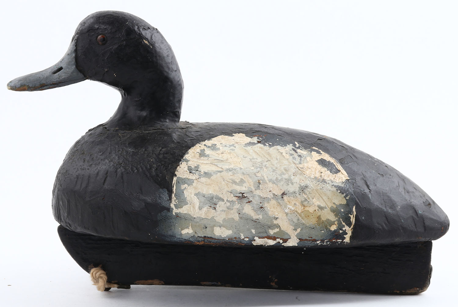 Bluebill Drake by unknown maker, GE, solid wood, repaint, structurally excellent. Grade: Very Good ++ - Value: 30 to 60