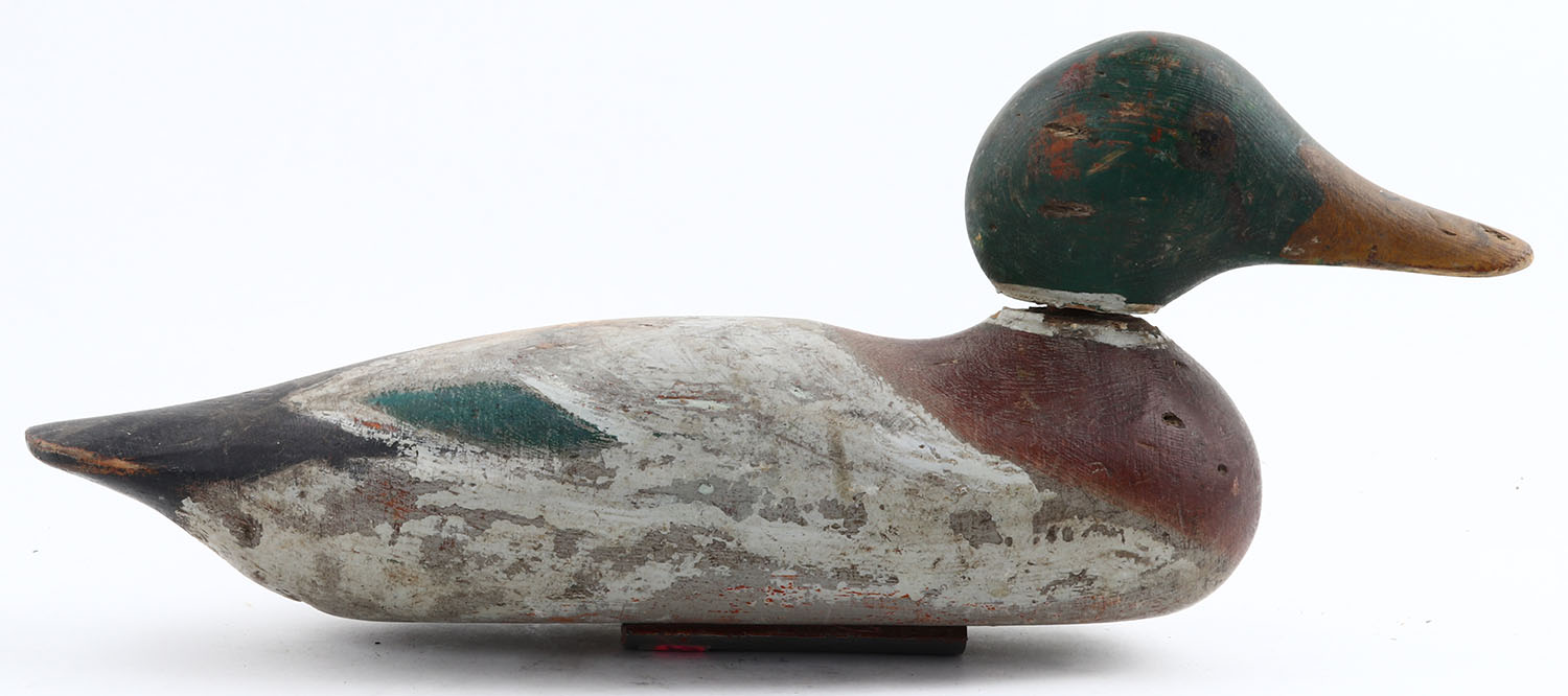 Standard Mallard Drake by Mason Decoy Company, Detroit, MI, 1896-1924. PE, solid wood, original paint, structurally excellent. Grade: Very Good + - Value: 50 to 100