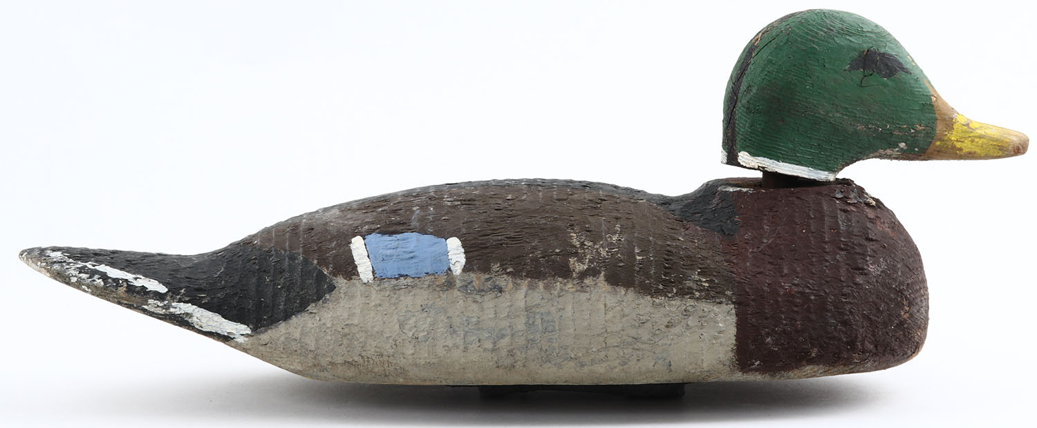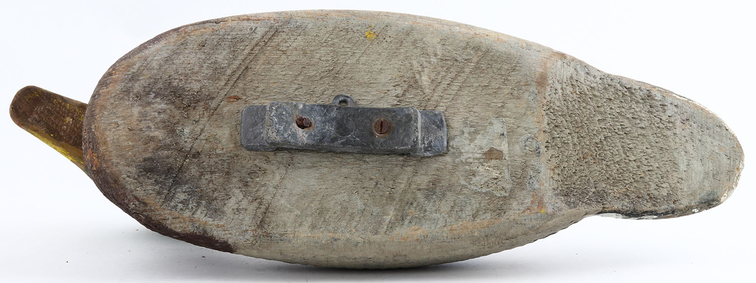 Black Duck by a Victor factory unmarked, no eyes and replaced head, solid wood, old repaint, 16 1/2'' OAL. Grade: Very Good - Value: 6 to 30