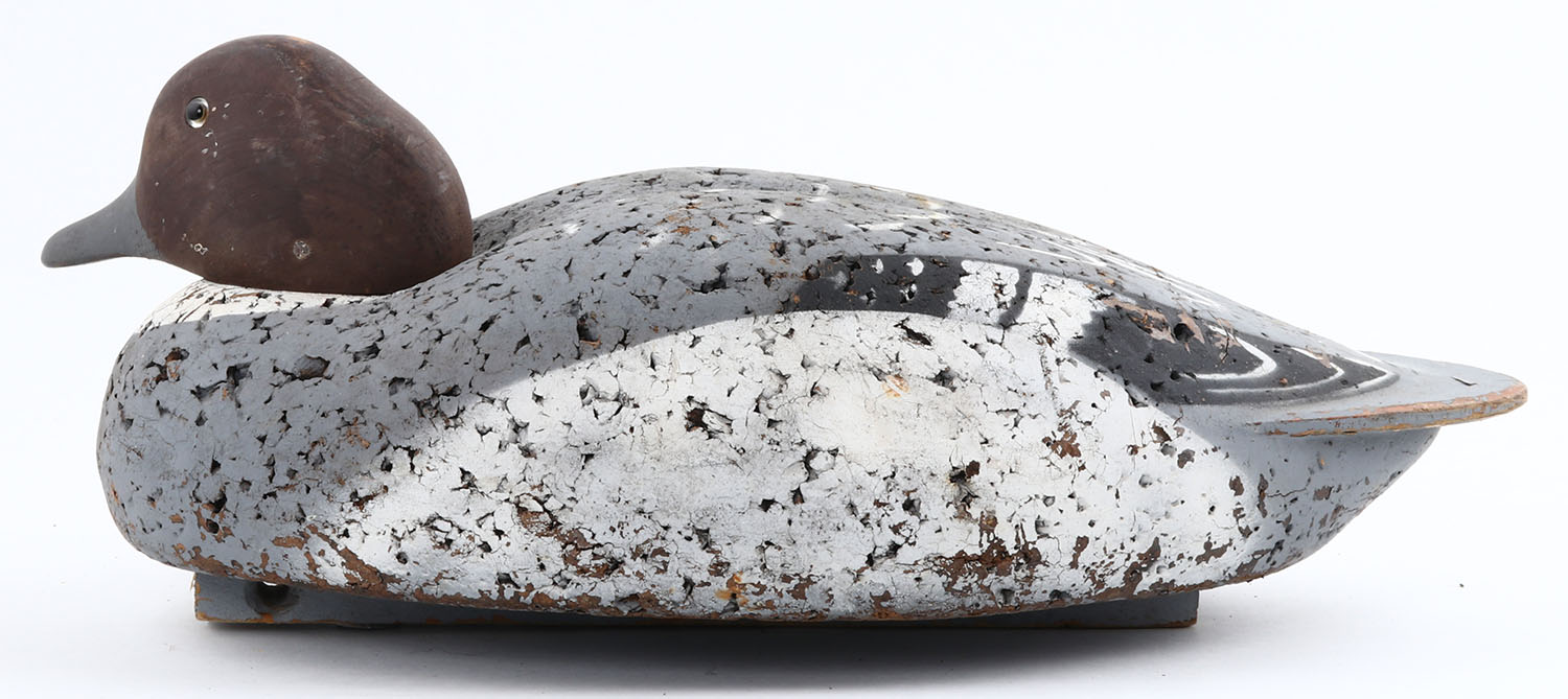 Goldeneye Hen by LL Bean, unmarked on keel, glass eyes, solid cork body, wood head, original paint, structurally excellent, 16'' OAL. Grade: Excellent - Value: 20 to 60