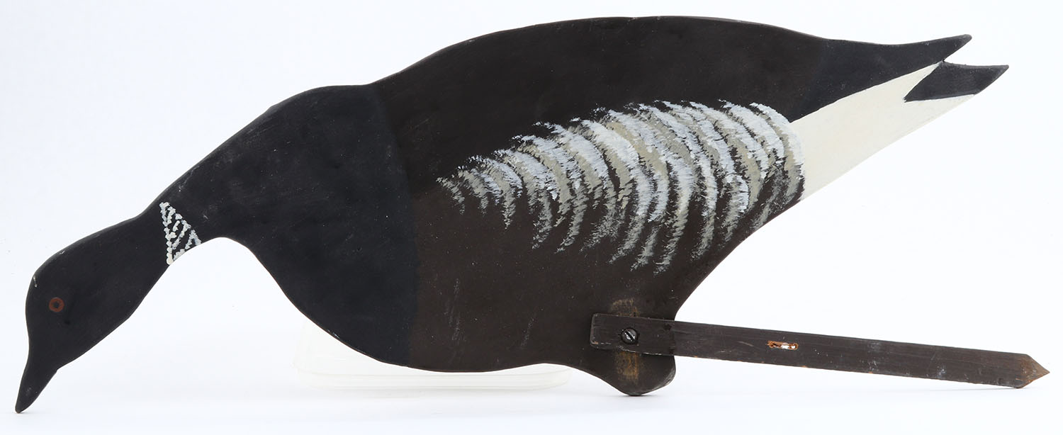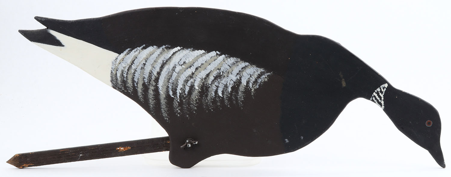 Black Brant field silhouette decoy with stake, PE, original paint, 22''. Grade: Excellent - Value: 10 to 50
