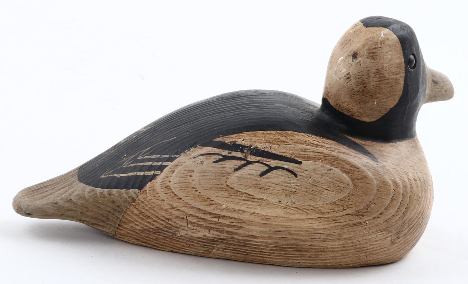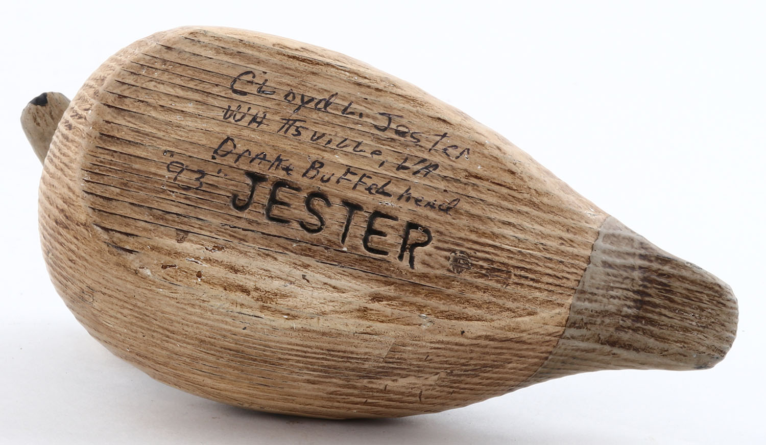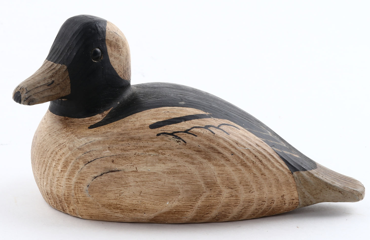 Miniature Bufflehead Drake by Cloyd L. Hester, Whitesville, VA and so marked on bottom, GE, solid wood, mint paint, 6'' OAL. Grade: Excellent ++ - Value: 20 to 60