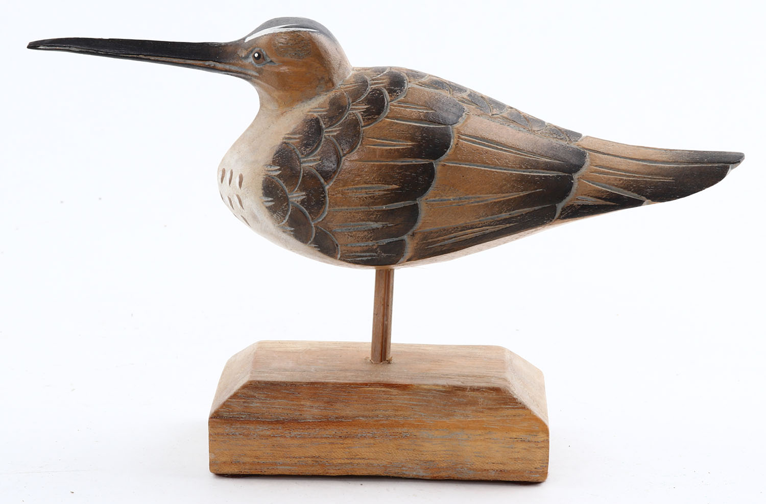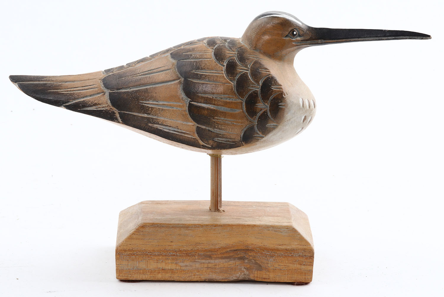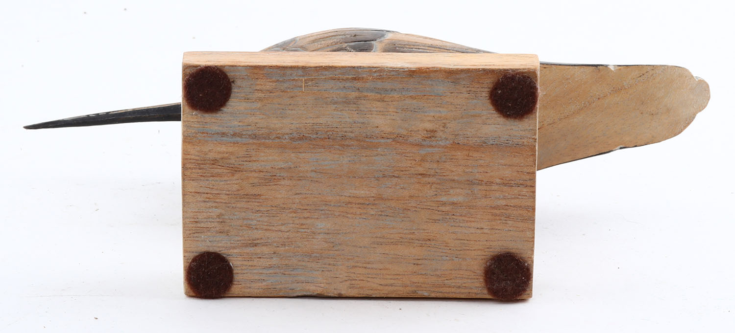 Shorebird by unknown maker, CE, solid wood, mint original paint, on stand, 8'' OAL. Grade: MINT - Value: 20 to 50