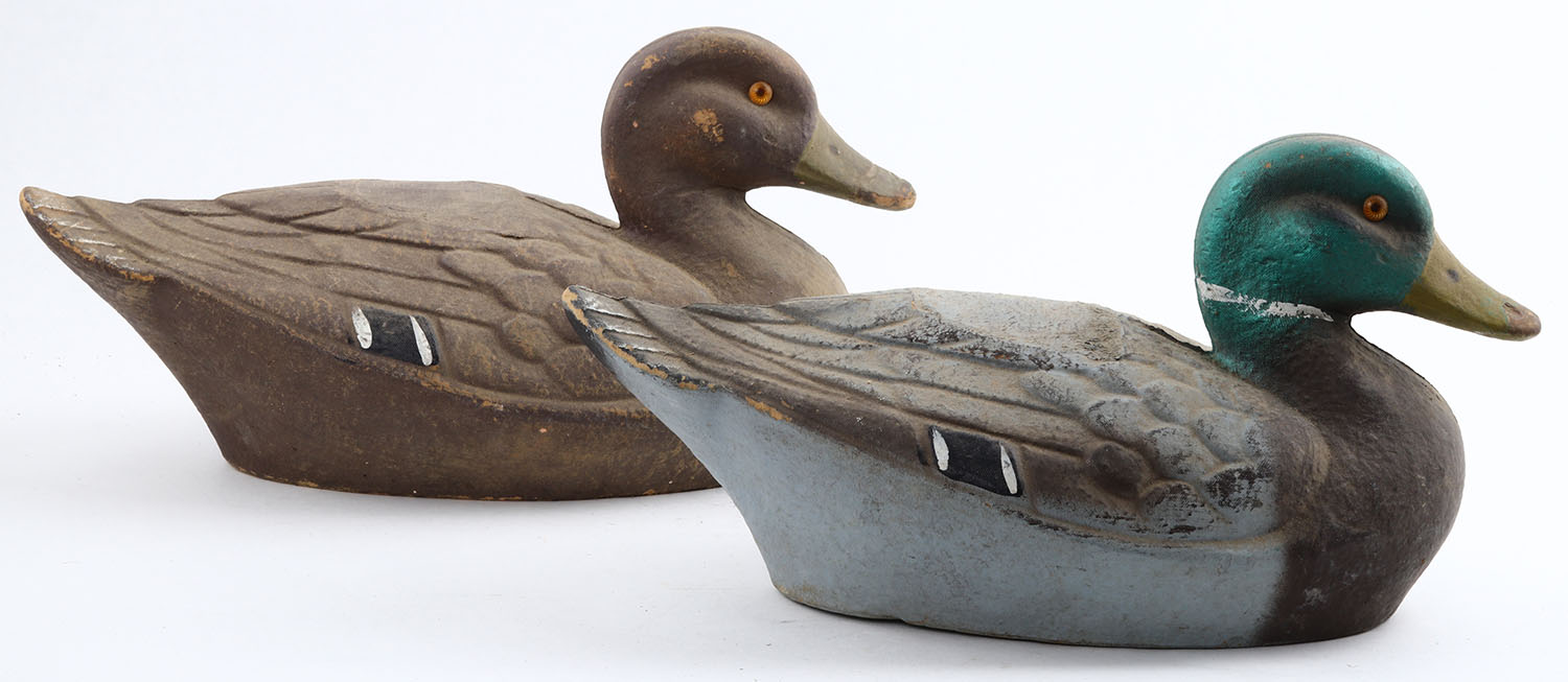 Pair of Mallard Aruduk decoys, paper mache'. Grade: Excellent - Value: 2 to 10