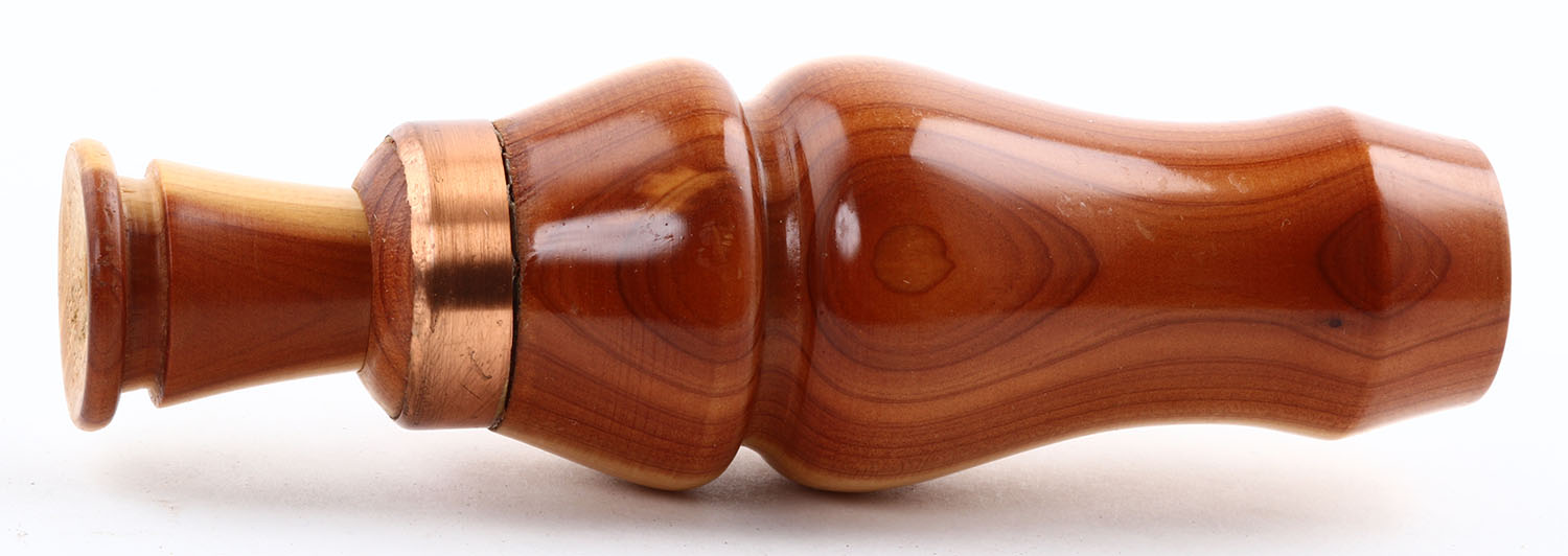 Roger Judd Duck Call, Delaware, AR, 1955-2008, signed & dated, #337 1-17-2006, plastic reed, 5'' OAL, nice finish. Grade: Excellent - Value: 40 to 100