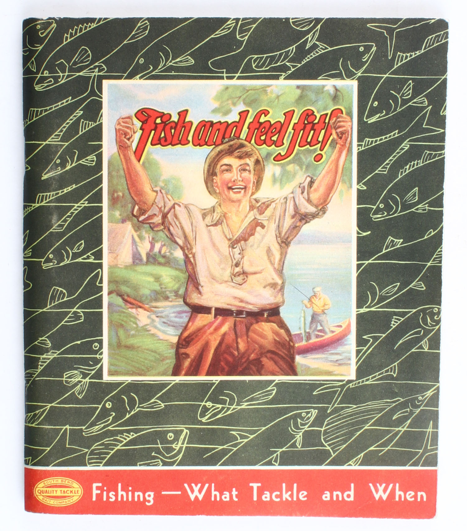 1937 South Bend Fishing Tackle Catalog, full line catalog with 112 pages of items pictured, 5'' x 6'', great color cover front & back, pictures rods, reels & all lures, many are in color, solid condition. Grade: Excellent + - Value: 20 to 60