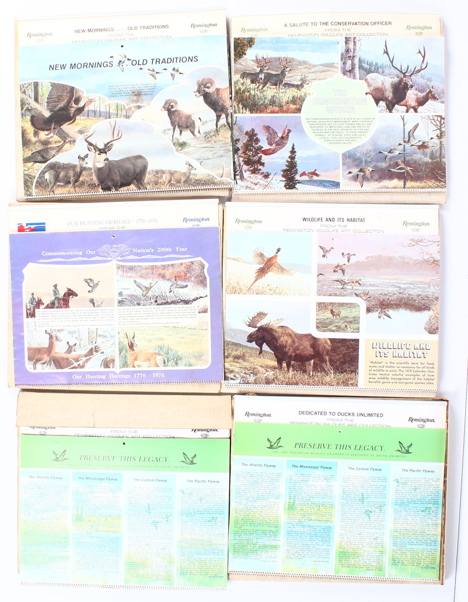 Lot of 6 Remington Calendars from 1976, 1978, 1979, 1981 & (2) 1982, all come in original cardboard boxes. Grade: Excellent ++ - Value: 20 to 80