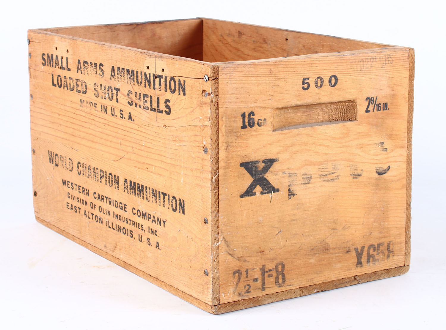 Western Xpert wood crate, 16 ga., red and black print is fading and crate is solid. Grade: Very Good - Value: 10 to 50