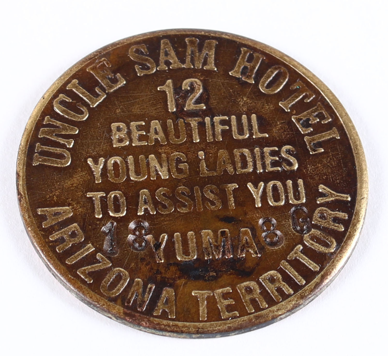 Brothel token, double sided, dated 188G. Grade: Excellent - Value: 20 to 80