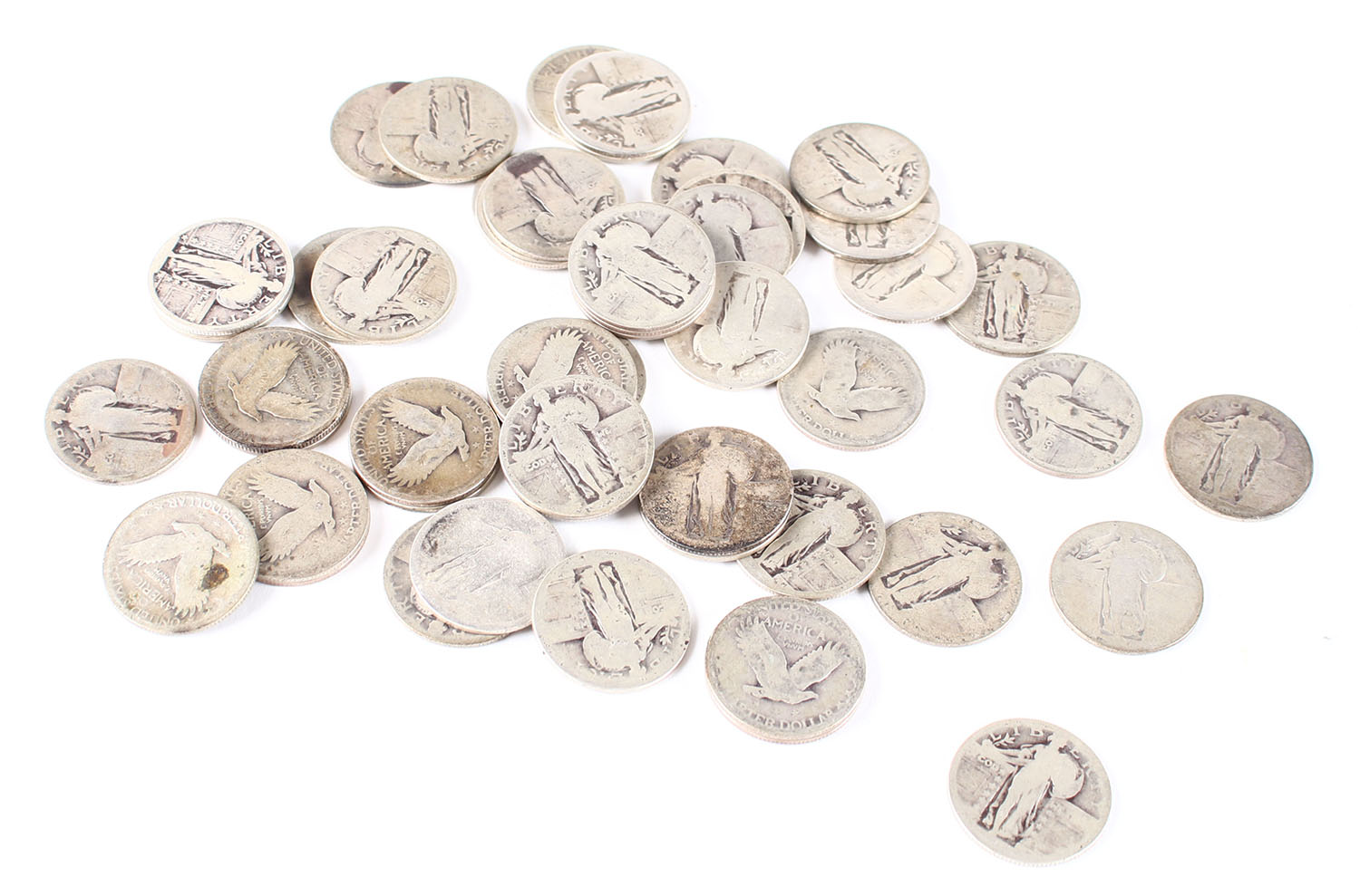 Lot of 50 Vintage Standing Liberty Quarters, heavy wear. Grade: Very Good - Value: 200 to 500