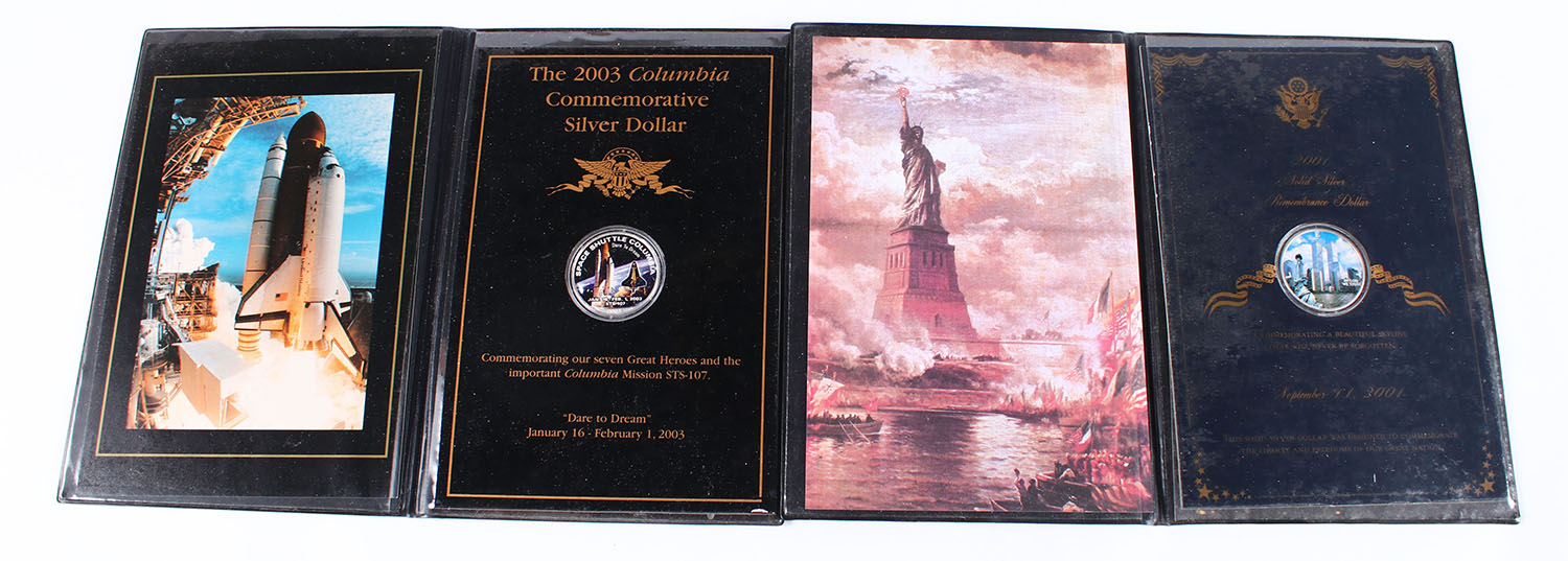 Lot of 2, US Commemorative coins, 2003 Columbia(space shuttle) Silver dollar and 2001 9/11 Remembrance dollars. Grade: Excellent ++ - Value: 50 to 100