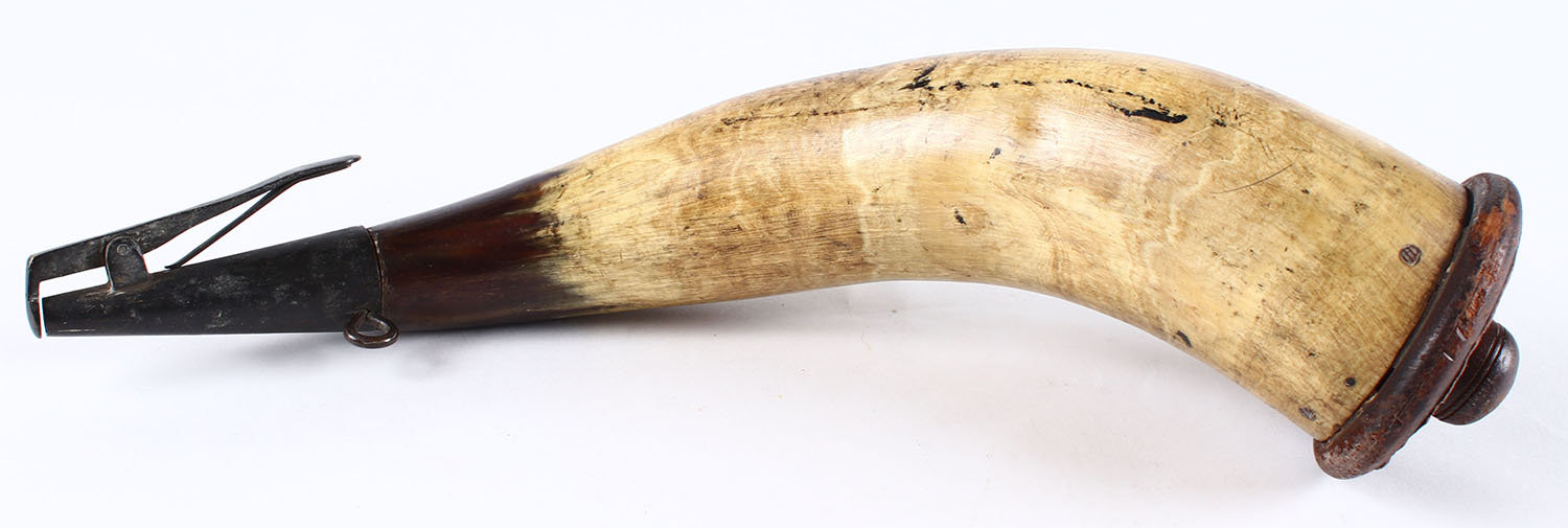 Early Large Unmarked powder horn, Empty. Grade: Excellent - Value: 40 to 80