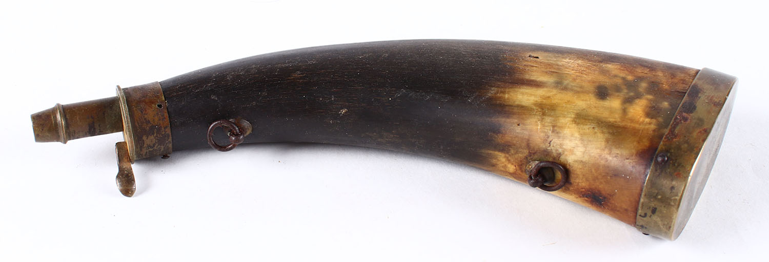Small Unmarked powder horn, Empty. Grade: Very Good - Value: 20 to 60