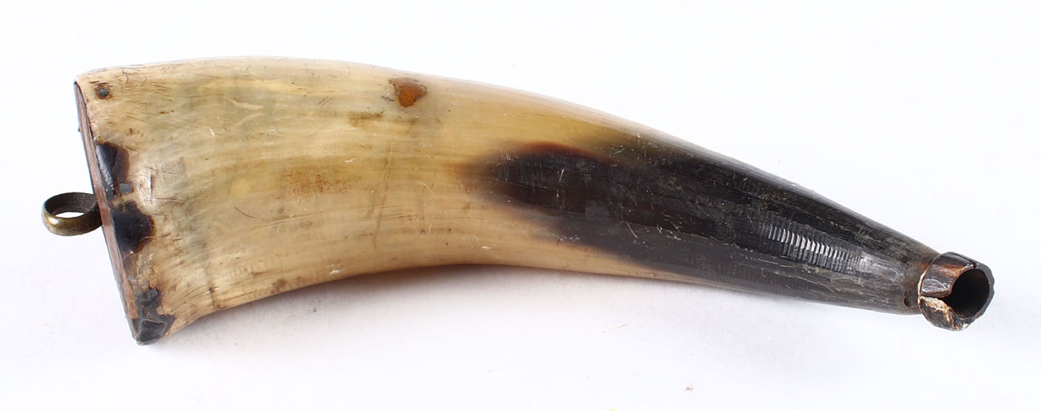 Small Unmarked powder horn, Empty. Grade: Very Good - Value: 10 to 50