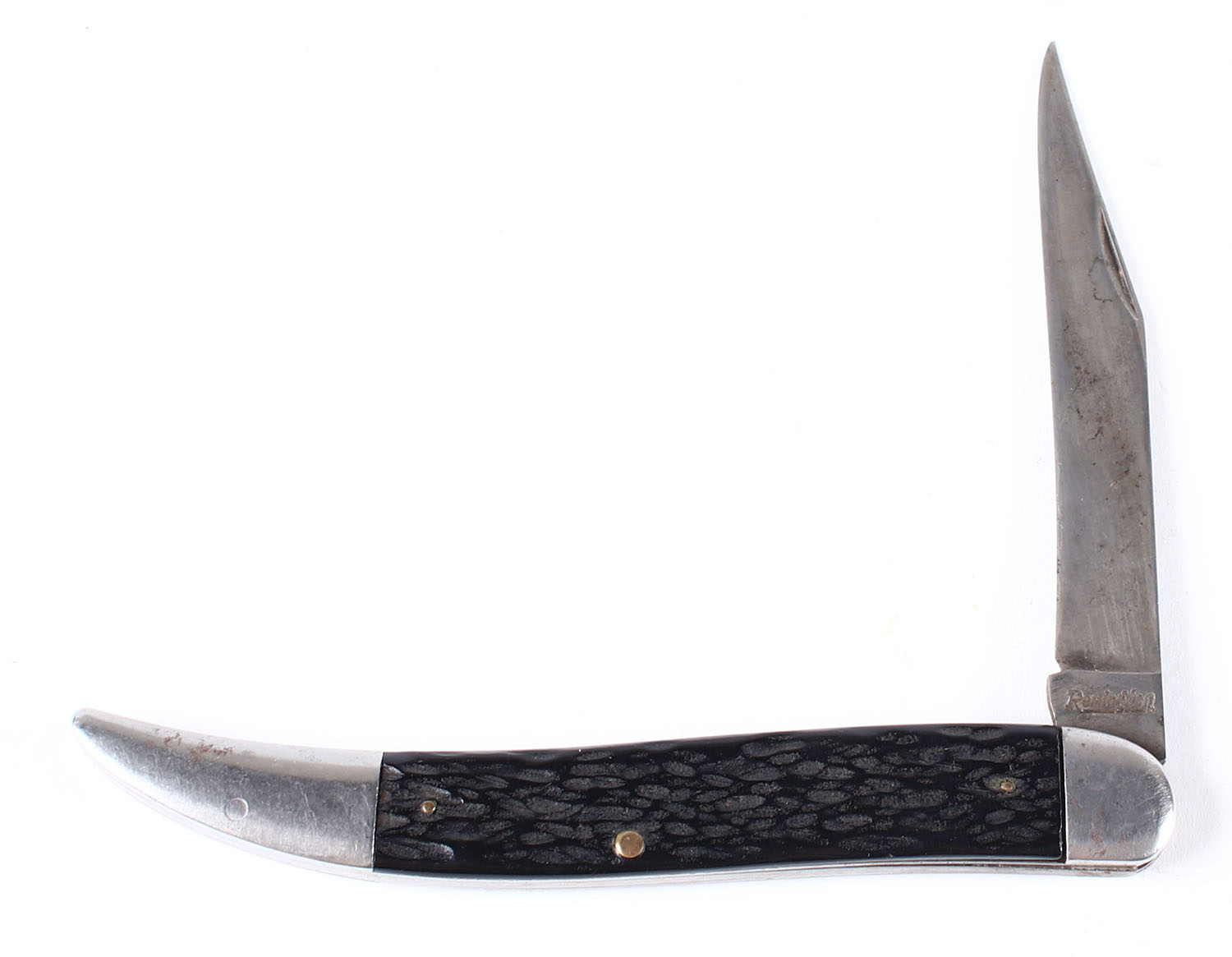 Remington knife, single blade fisherman's knife, black scales. Grade: Excellent - Value: 50 to 150