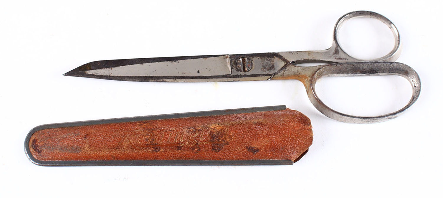 Remington 1930s scissors in Remington marked sheath. Grade: Excellent - Value: 20 to 100