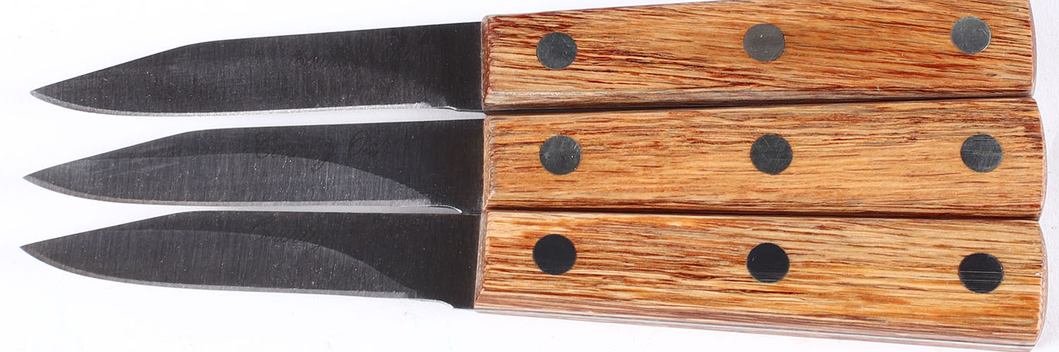 Lot of 3 Schrade fixed blade knives, 2.75'' blade, ''Country Oak'' on blade. Grade: Excellent ++ - Value: 40 to 100