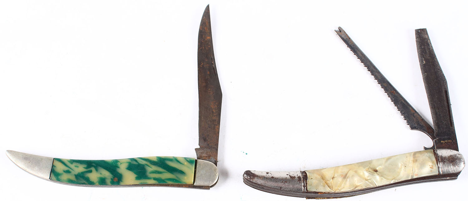 Lot of 2 Folding blade knives, 1 has heavy rust and one has light trust. Grade: Good ++ - Value: 2 to 50
