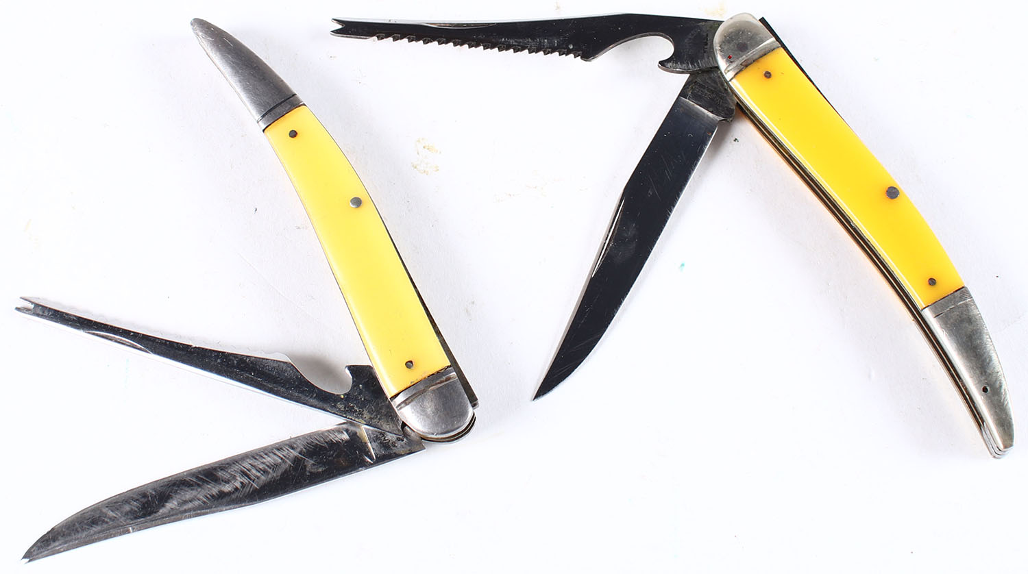 Lot of 2 Western folding knives, both have 2 blades, 1 has repair to handle. Grade: Very Good - Value: 40 to 150