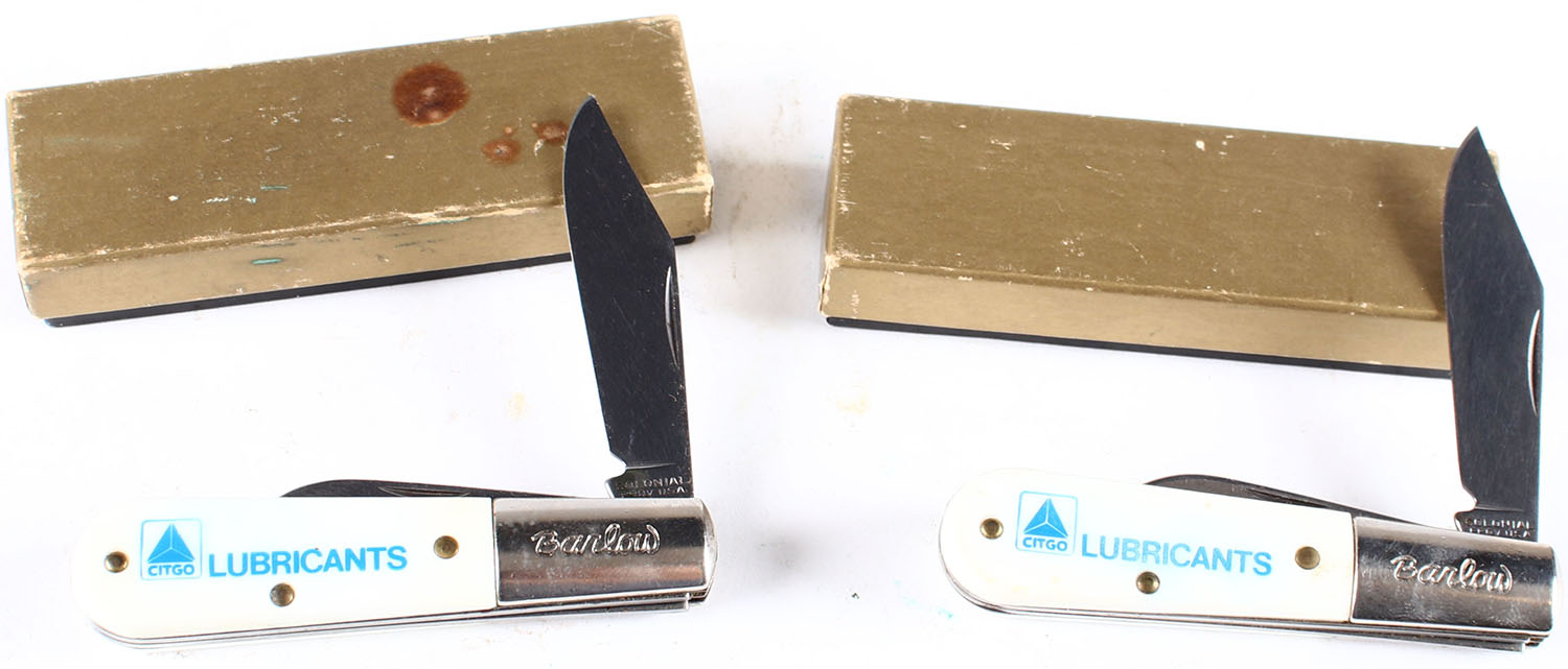 Lot of 2 Barlow folding knives, both have Citgo Lubricant on handle, in boxes. Grade: Excellent - Value: 20 to 60