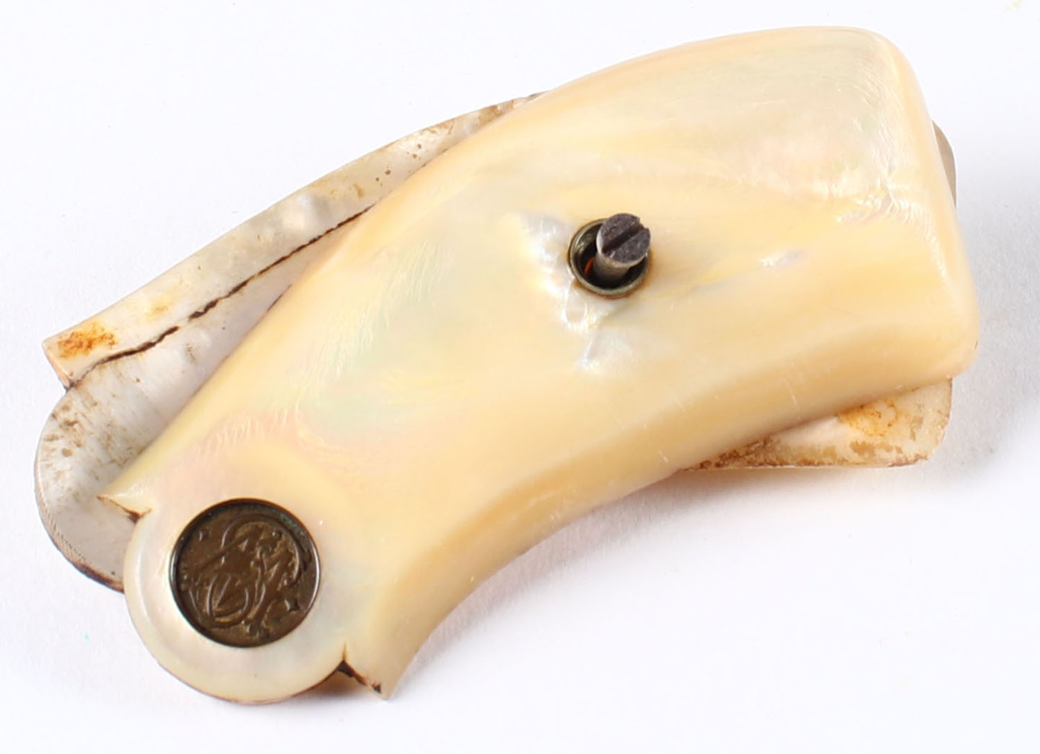 S&W Mother of Pearl pistol grips, with screw. Grade: Very Good - Value: 40 to 100