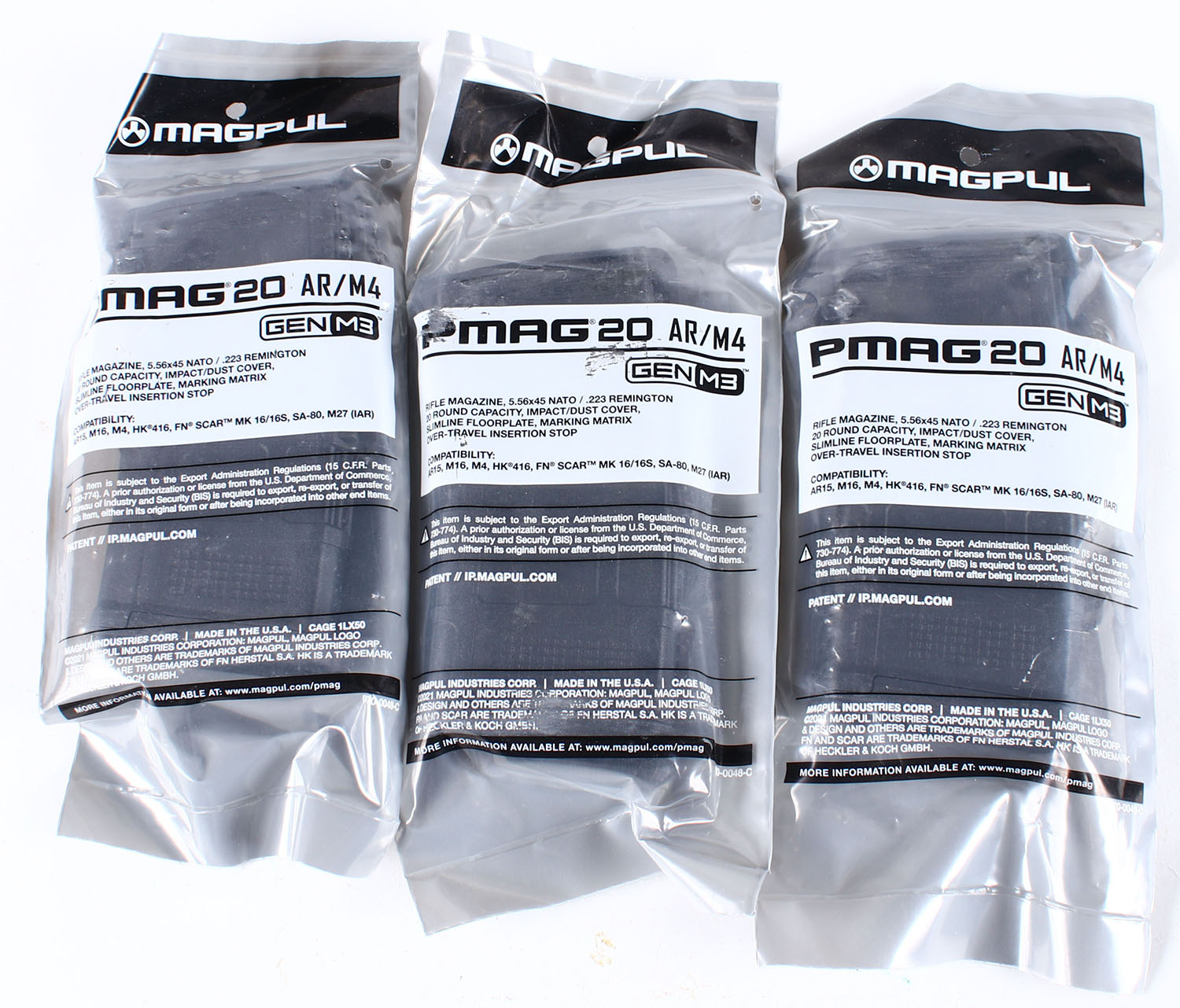 Lot of 3 Pmag 20 Ar/M4, 5.56 and 20 rd, sealed in plastic bag. Grade: Excellent ++ - Value: 16 to 50