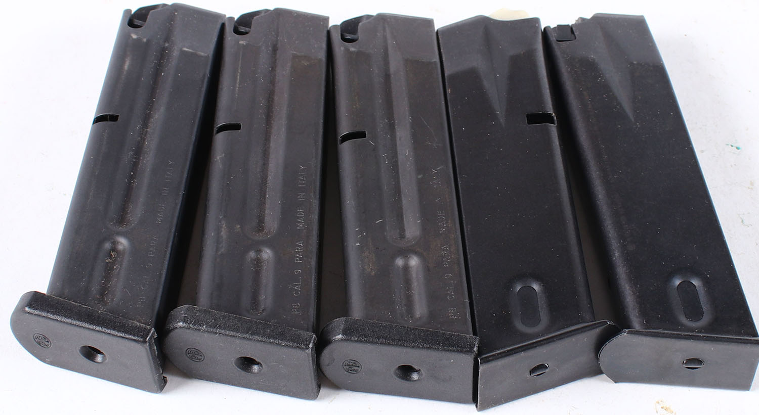 Lot of 5 pistol magazines, 45 cal or 40 cal mags. Grade: Excellent - Value: 30 to 90