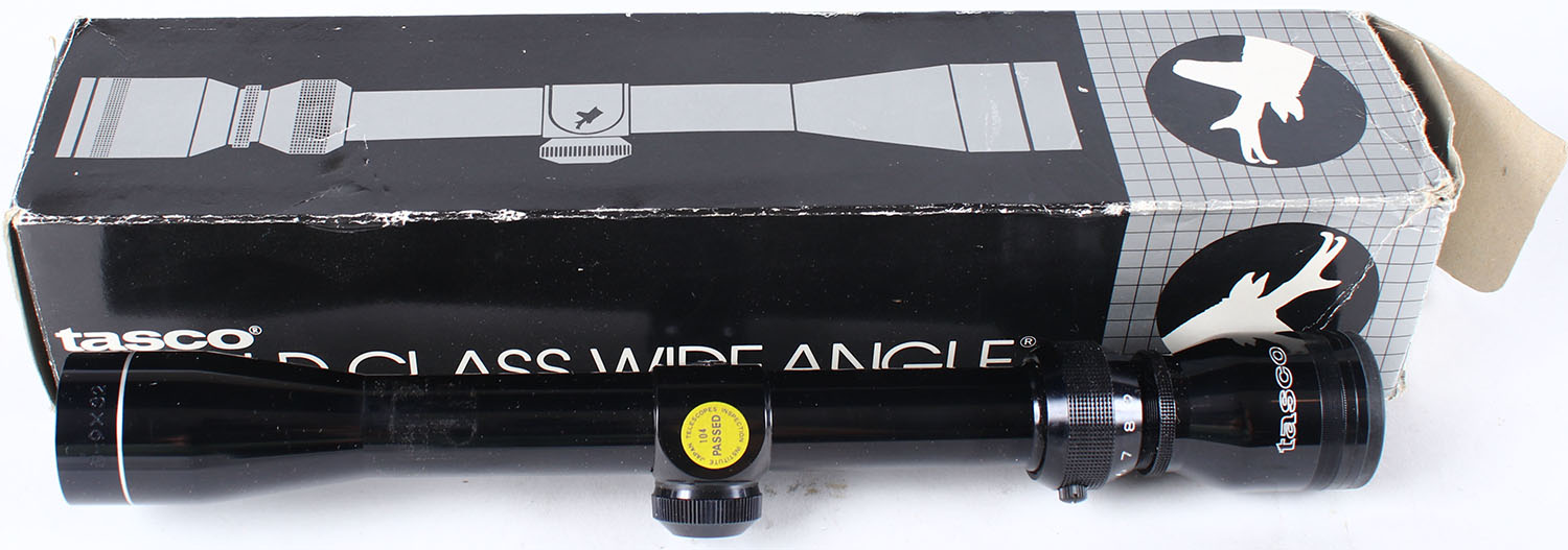 Tasco 3-9x32mm rifle scope, in original box. Grade: Excellent ++ - Value: 50 to 100