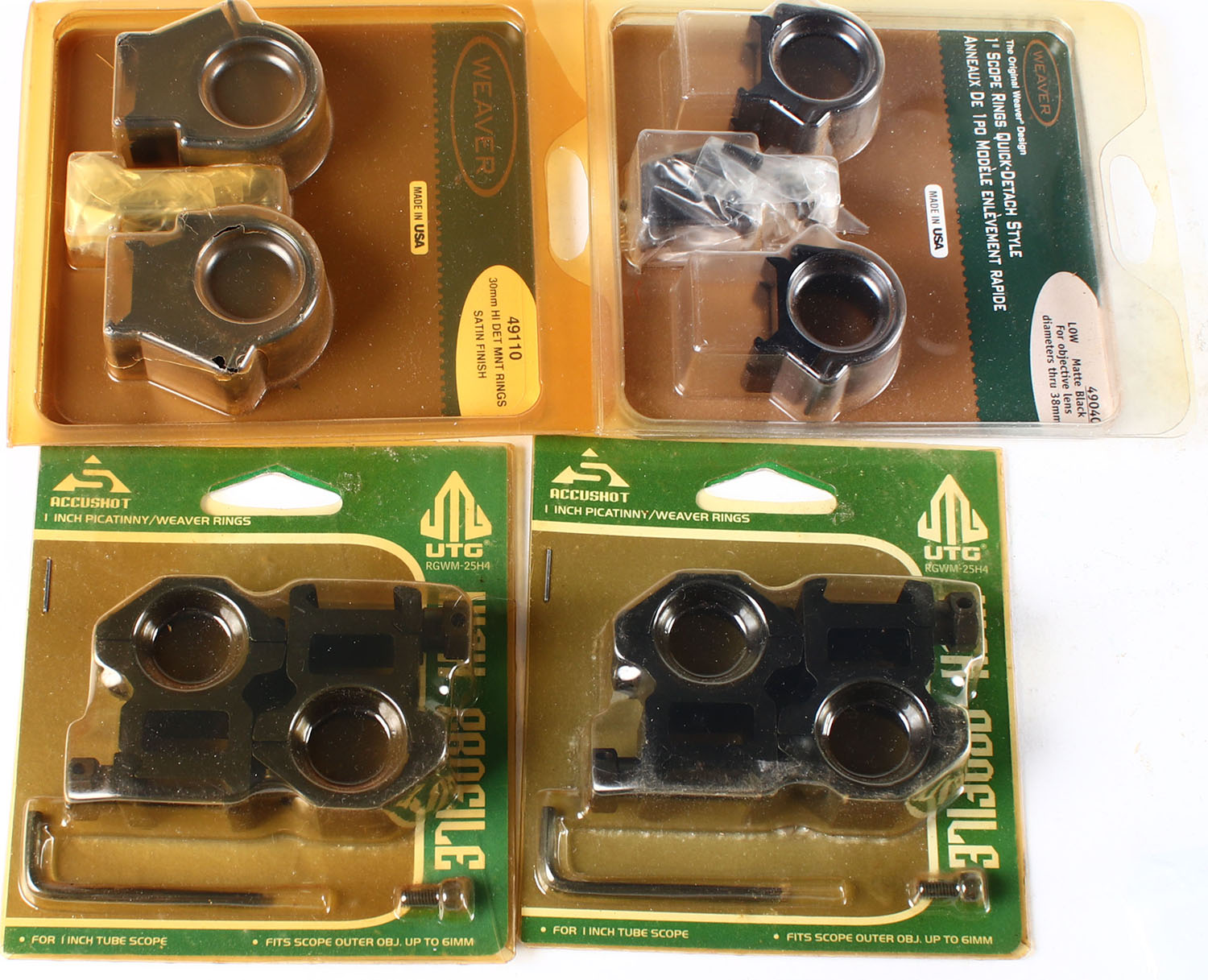 Lot of 4 scope mounting rings. Grade: Excellent - Value: 2 to 50