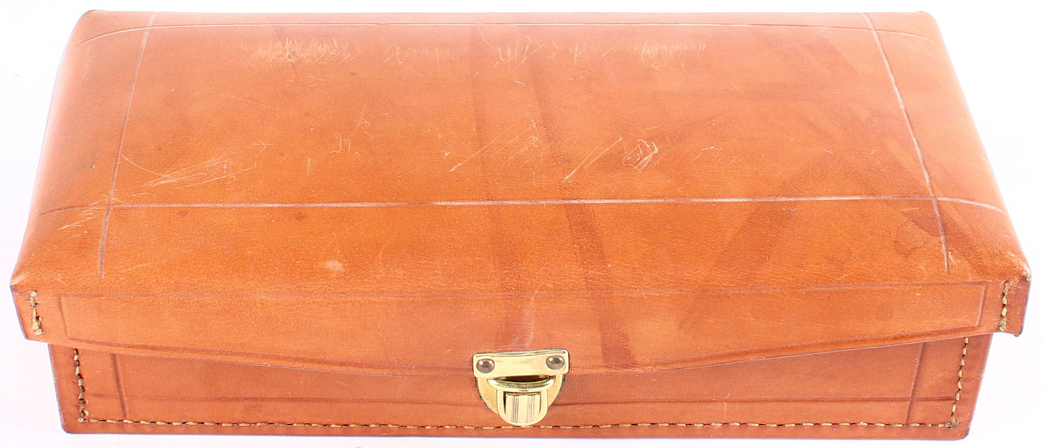 Leather square box, made by Hamley Kit. Grade: Excellent - Value: 10 to 50