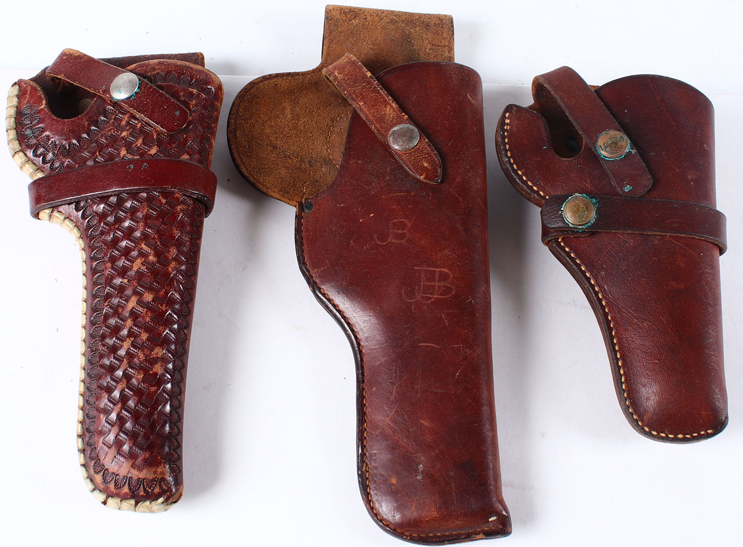 Lot of 3 leather pistol holsters. Grade: Excellent - Value: 20 to 60