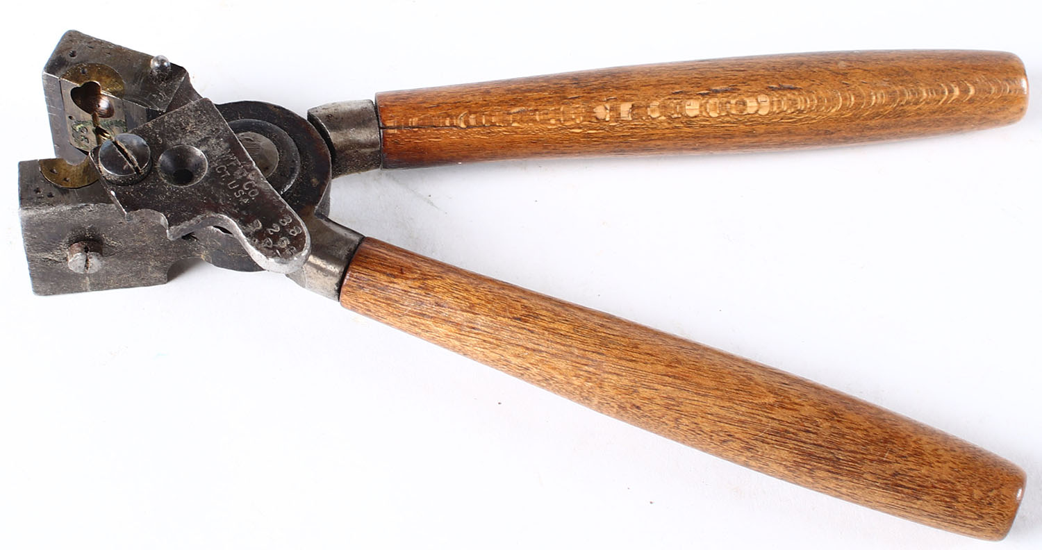 Ideal Bullet mold reloading tool, 38 cal cal, with wood handles, cavity looks to have insert round ball marked .35. Grade: Very Good ++ - Value: 10 to 50