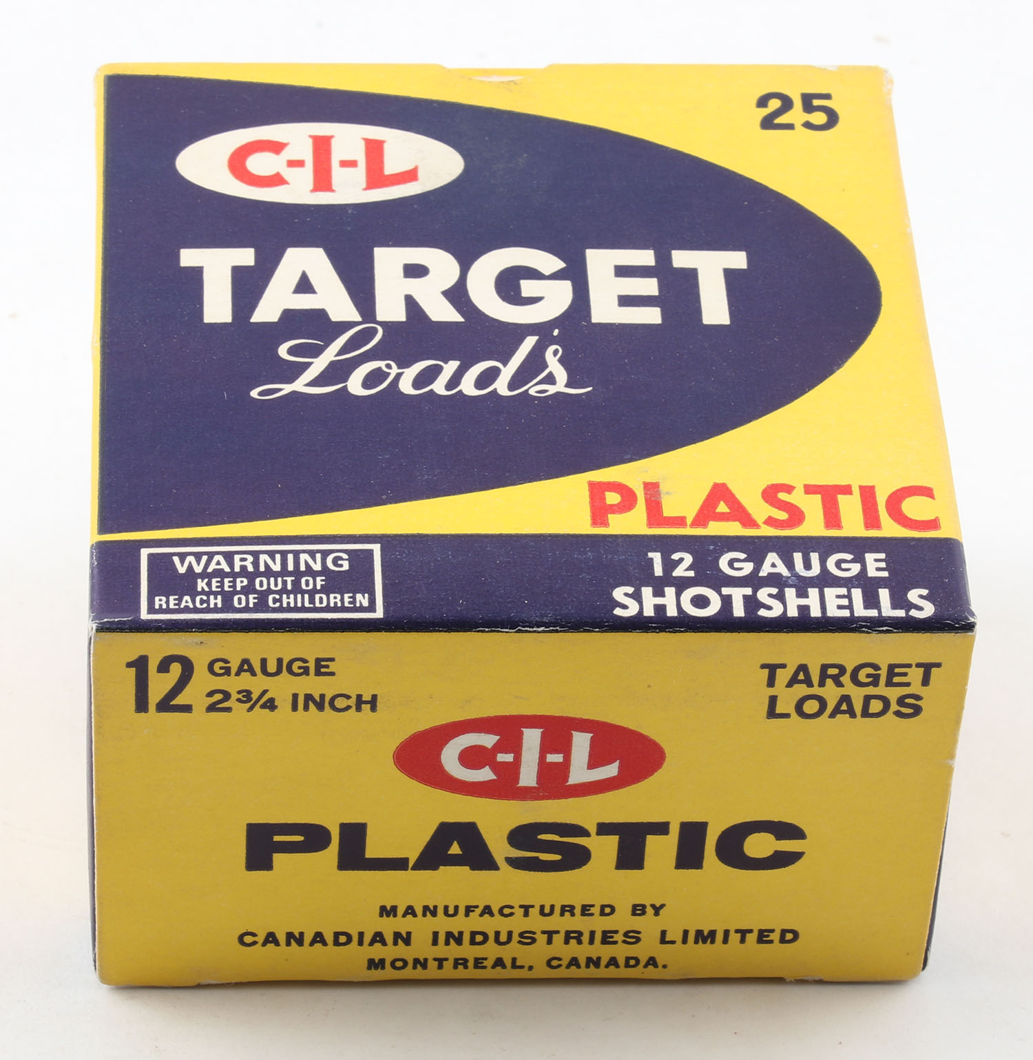 CIL, Target Loads, 12ga., 1pc., Full, shot size 7 1/2, multi-colored box, box is very solid with excellent color, corners are sharp, edges are crisp, plastic shells are excellent. Grade: Excellent ++ - Value: 10 to 50