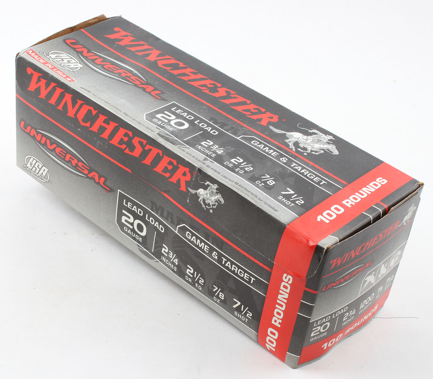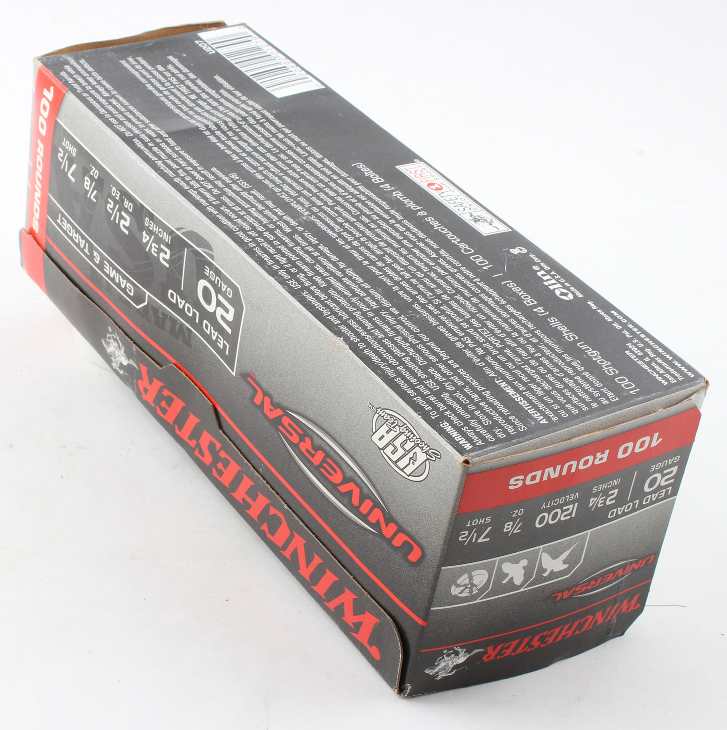FULL CASE of WINCHESTER, Universal, Game & Target, 20ga., 1pc., shot size 7 1/2, 2 3/4'', FULL & SEALED, 100rds. Grade: Excellent + - Value: 30 to 80
