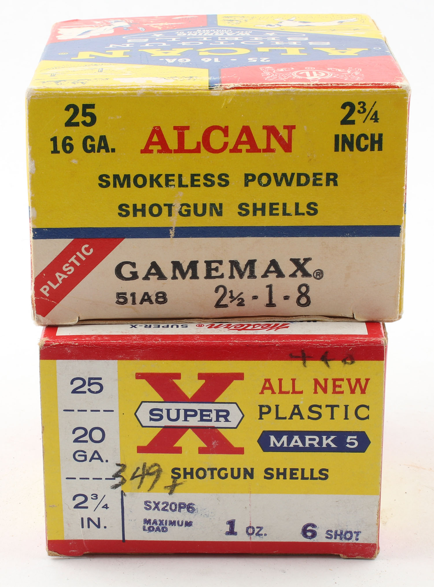 Lot of 2, Mixed Manufacture, 16 & 20ga., Appears Full, shot size 8 & 6, Shotshell boxes. Grade: Very Good - Value: 10 to 30